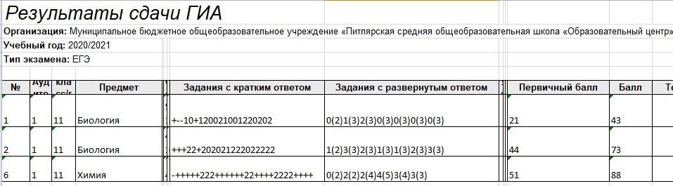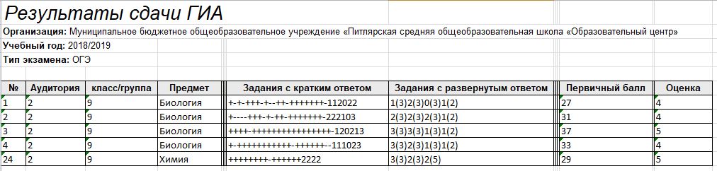 Результаты ГИА в форме ОГЭ и ЕГЭ