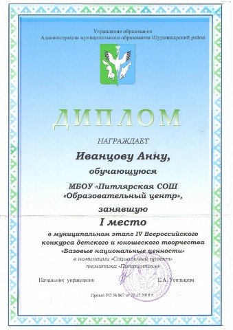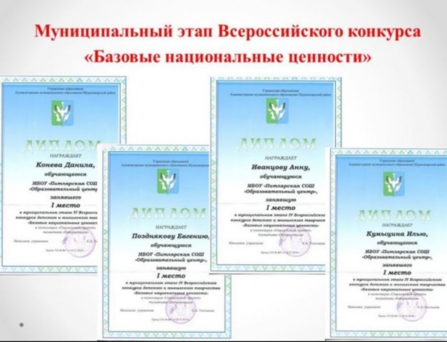 IV Всероссийского конкурса детского и юношеского творчества «Базовые национальные ценности». Муниципальный этап |
